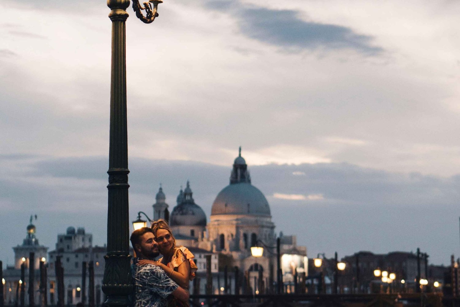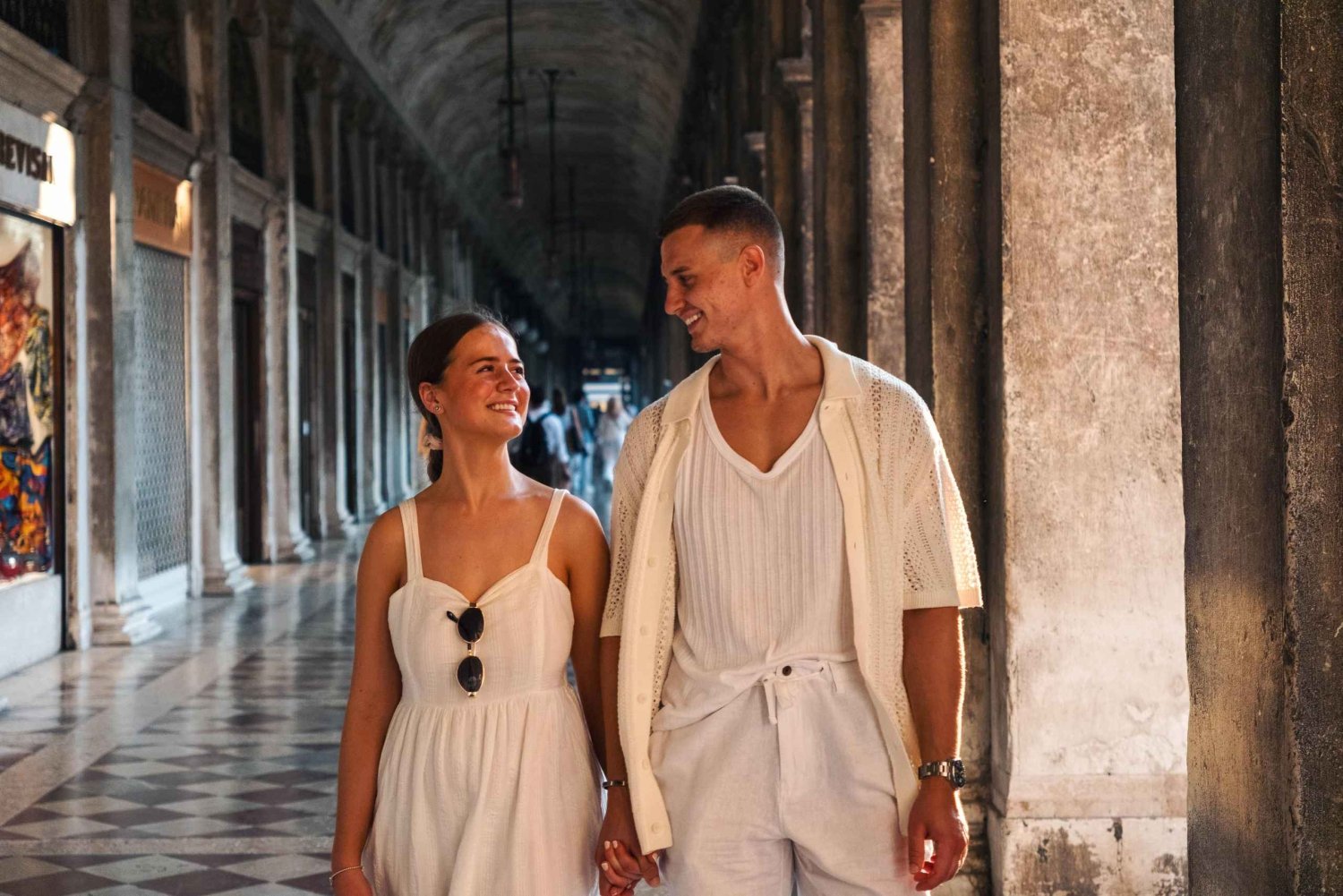 التقط سحر رحلتك إلى البندقية برفقة مصور محترف محلي! سنصحبك في جولة عبر المعالم الشهيرة - مثل قصر دوجي، وجسر التنهدات، وساحة سان ماركو - وفي أرجاء البندقية الهادئة والأقل شهرة. بفضل خبرتنا المحلية، ستعكس كل صورة جمال رحلتك الأصيل عبر القنوات. التقي بنا في الموقع المحدد، واستمتع بتجربة تصوير شخصية، واستلم صورك المعدّلة خلال 72 ساعة. استعد رحلتك بصور خالدة توثق كل لحظة لا تُنسى.Includes