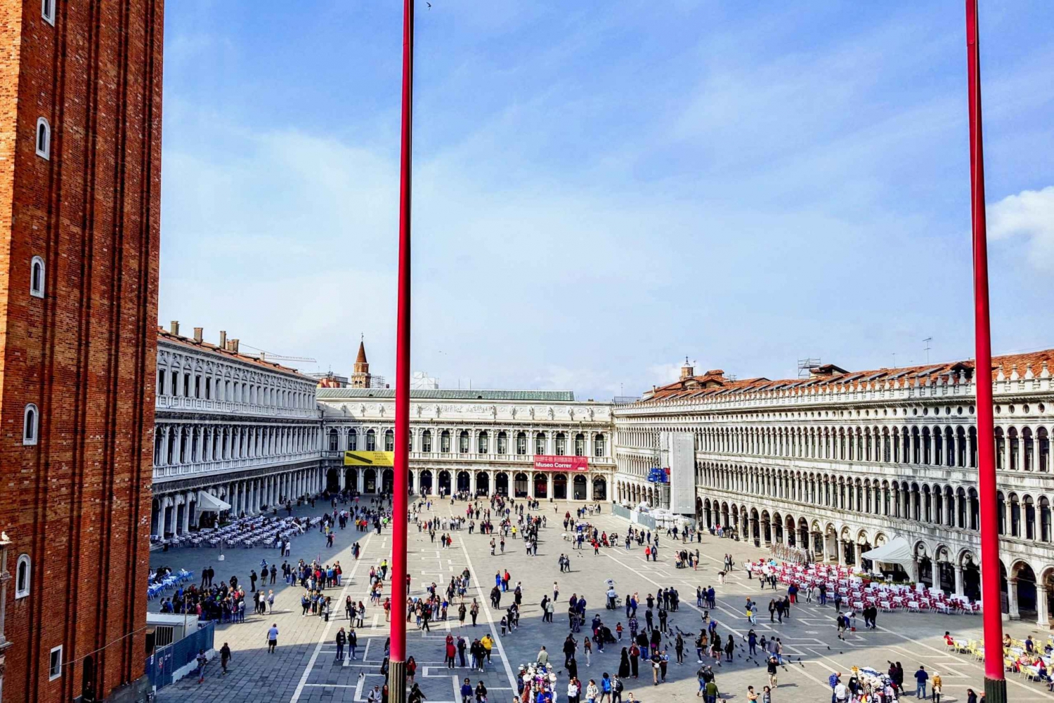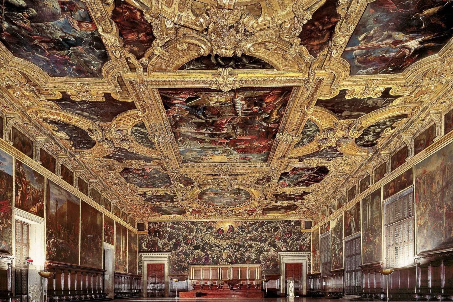 Når du har forladt dit centralt beliggende mødested, bliver du guidet ind i boligområdet Castello, så du kan opdage denne del af Venedig i al sin elegance. Du kan forvente at se Santa Maria Formosa-pladsen, en af de største pladser i Venedig med en kirke, der er opkaldt efter besøget af den hellige jomfru. Du vil også opleve pladsen Saints Giovanni and Paolo, hvor du kan beundre den berømte kirke, hvilestedet for flere doger og ryttermonumentet for Bartolomeo Colleoni, en italiensk lejesoldatkaptajn. Du kan også udforske den tidligere bolig for Marco Polo, nok den mest berømte venetianske købmand. Når du vender tilbage til Markuspladsen, bliver du ledsaget ind i Dogepaladset, hvor du besøger de sale, hvor hertugen (Doge) og hans råd styrede Den Ærlige Republiks skæbne. Du vil være omgivet af hundredvis af kunstneriske mesterværker og opdage Venedigs og dens folks politiske historie. Du kan beundre berømte malerier af nogle af de vigtigste kunstnere fra den italienske renæssance, herunder verdens største oliemaleri af Tintoretto. Når du har passeret den berømte Sukkenes Bro, kommer du til de nye fængsler. Til sidst besøger du det indre af Markuskirken, som engang var privatkapel for dogen af Venedig og det eneste af sin slags i Italien. Du får mulighed for at sætte dig ned i kirken og suge atmosfæren til dig, mens du lytter til din guide, som beskriver de bibelske scener, der er repræsenteret i hele bygningen. Dette er den eneste tur med særlig tilladelse til at sidde i det centrale skib inde i basilikaen. Din 4-timers kombinerede tur slutter derefter uden for basilikaen på Markuspladsen. I slutningen af turen har du mulighed for at besøge Correr-museet med samme billet.