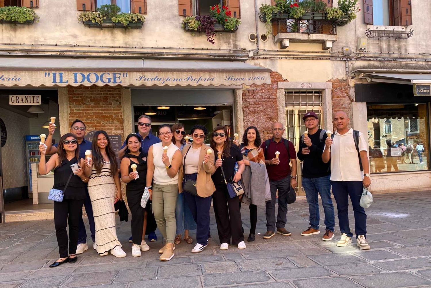 Degustaciones de especialidades locales, como cicchetti, marisco, carne y helado artesanal
