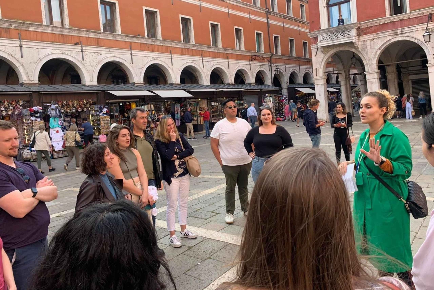 Embárcate en un inolvidable recorrido gastronómico por las calles de Venecia que te adentrará en el corazón de las tradiciones culinarias venecianas. Pasea por bulliciosas plazas y sinuosos canales mientras saboreas una serie de deliciosas especialidades locales. Disfruta de paradas en restaurantes históricos para probar los 'cicchetti', una deliciosa variedad de pequeños bocados con marisco fresco, carnes y quesos. Deléitate con helados artesanales y especialidades locales mientras paseas por lugares emblemáticos como el Gran Canal, Campo Santa Margherita y San Polo. El punto culminante es el animado Mercado de Rialto, donde aprenderás sobre el legado comercial de la ciudad y probarás ingredientes frescos. Deja que tu guía te cuente fascinantes historias sobre la historia, el arte y la rica cultura culinaria de Venecia.
