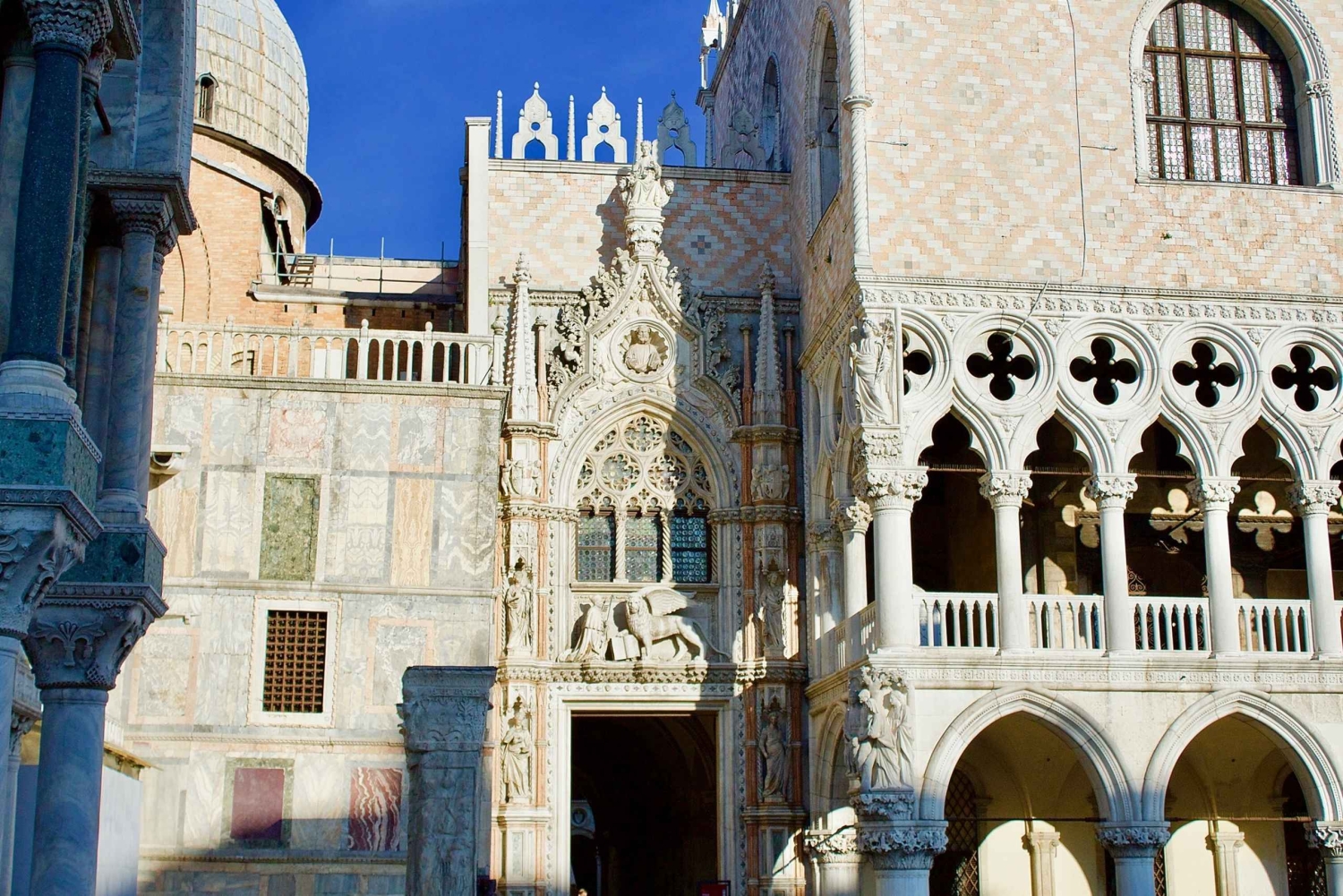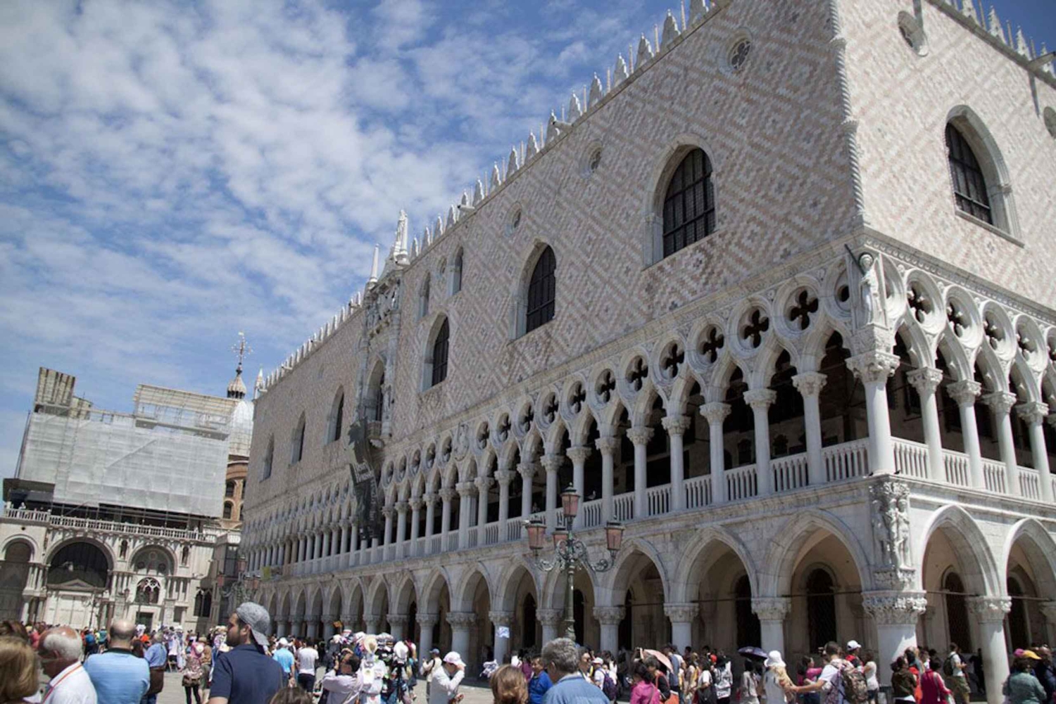 Discover the Doge's Palace, one of the most important symbols of Venice and for centuries, the historical seat of the most important political power of the Serene Venetian Republic. Meet your professional guide in St. Mark's Square who will escort you into this magnificent palace to visit the halls of power and immerse yourself in medieval Europe, among hundreds of masterpieces. Dominating St. Mark's Square, the heart of Venice, the Doge's Palace stands out for its size and its extraordinary structure, where Byzantine, European and Oriental architecture collide. Immediately entering the palace, you will pass through the great courtyard and admire the wealth of detail on the famous Golden Staircase. Once inside the palace, you will visit the halls where the Duke (Doge) and his Council controlled the fate of the Serene Republic, whilst surrounded by hundreds of artistic masterpieces and discover the political history of Venice and its people. You will be able to admire the paintings realized by some of the most important artists of the Italian Renaissance, amongst them, the world's largest oil paintings by Tintoretto. Passing through the famous Bridge of Sighs, you will reach the new prisons. The bridge was given its name by the English poet Lord Byron, probably referring to the last breath of the prisoners, who had their last view of the lagoon and of Venice from the window of this bridge, before they were to be imprisoned. This guided tour will conclude in the courtyard of the Doge's Palace. Here, it will be possible for you to stay longer inside the palace absorbing the history and mystery of days gone by.Includes