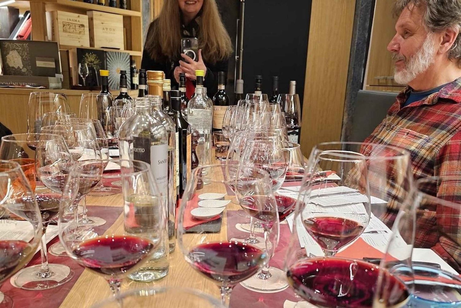 3 hienon italialaisen viinin maistelu Näytteenotto 5:stä parhaasta italialaisesta juustosta AIS-sertifioidun sommelierin ja juustoasiantuntijan opastusta. Yksityinen, ilmastoitu maisteluhuone 1 tunnin mittainen maistelu visuaalisten apuvälineiden kera 30 minuutin kyselytunti Mahdollisuus jatkaa kokemusta Vineria all'Amarone -ravintolassa kello 22.30 asti. Mahdollisuus ostaa viinejä mukaan otettavaksi tai kuljetettavaksi Kansainväliset toimitusvaihtoehdot viinien ostoa varten Pääsy viiniklubimme tilauksiin Ilmainen WiFi maisteluhuoneessa.Easy cancellation