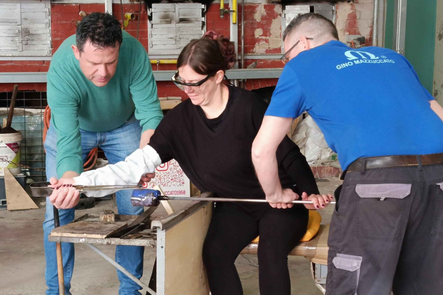 Se on elämäsi kokemus! Työstä Murano-lasin taitavan lasimestarin kanssa ja vie työsi tulos kotiin! Tämä on kaikkein räätälöidyin ja persoonallisin muranolasityö, jonka voit saada! Tiimimme jäsen toivottaa sinut tervetulleeksi Gino Mazzuccaton lasitehtaalle, ja lasimestari näyttää sinulle, miten hän työstää lasia, ja antaa sinulle esimerkin siitä, mitä teet seuraavaksi. Sitten on sinun vuorosi työstää lasia! Lasimestari auttaa sinua askel askeleelta, kun luot omaa esinettäsi! Aloitamme jollain helpolla (muista, että lasimestariksi tuleminen Muranossa vaatii noin 10 vuoden kokemuksen, mutta sinä teet jotain, jonka voit tehdä) kuten juomalasilla. Elämyksen viimeinen osa on lasin puhallus lasimestarin kanssa, joten työpajan aikana kokeilet myös vanhinta lasinvalmistustekniikkaa Koko elämys suoritetaan täysin turvallisesti, me tarjoamme laitteet sen tekemiseen Suosittelemme käyttämään suljettuja kenkiä Jos varaat elämyksen ensimmäisenä päivänä Venetsiassa, voimme toimittaa sen hotelliisi, muuten voimme lähettää tuotteen lisämaksusta. Elämyksen lopussa lasimestari näyttää, miten hän voi tehdä toisen pienen lasitaideteoksen Vierailu jatkuu näyttelytilassamme, jossa on suurimpien Muranon lasimestareiden tekemiä esineitä Täältä voit ostaa parhaanlaatuisia Murano-lasiesineitä ja saada ne lähetettyä kotiisi! Tarjoamme kansainvälisen toimituksen ja vakuutuksenIncludes
