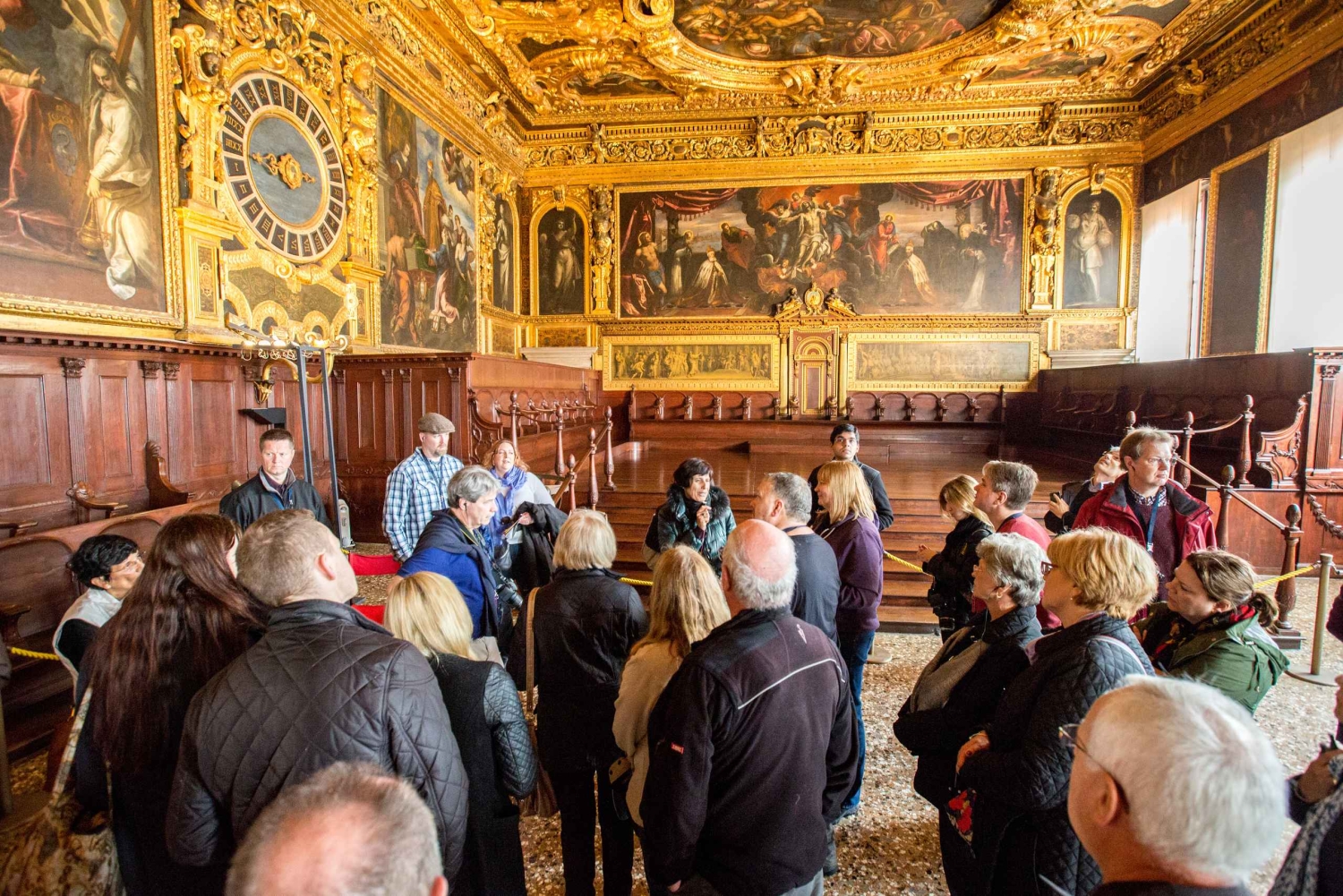 Le Palazzo Ducale, ou 'palais des Doges', a été le siège du pouvoir politique vénitien pendant des siècles. Cette visite d'une heure vous permettra d'entrer dans les splendides salles, ornées de centaines de chefs-d'œuvre d'art, où le duc et son conseil contrôlaient le destin d'une république vieille de 1 000 ans. En compagnie d'un guide expert, vous découvrirez les coulisses du pouvoir et plongerez dans un contexte historique très particulier : le Moyen-Âge européen. Laissez-vous surprendre par la richesse des détails de l'escalier d'or et par le réalisme remarquable des scènes créées par les nombreux artistes qui ont décoré l'édifice. Revivez l'angoisse des prisonniers en traversant le célèbre pont des Soupirs, et pénétrez dans les prisons vénitiennes, célèbres pour avoir accueilli, entre autres, Giacomo Casanova.Includes