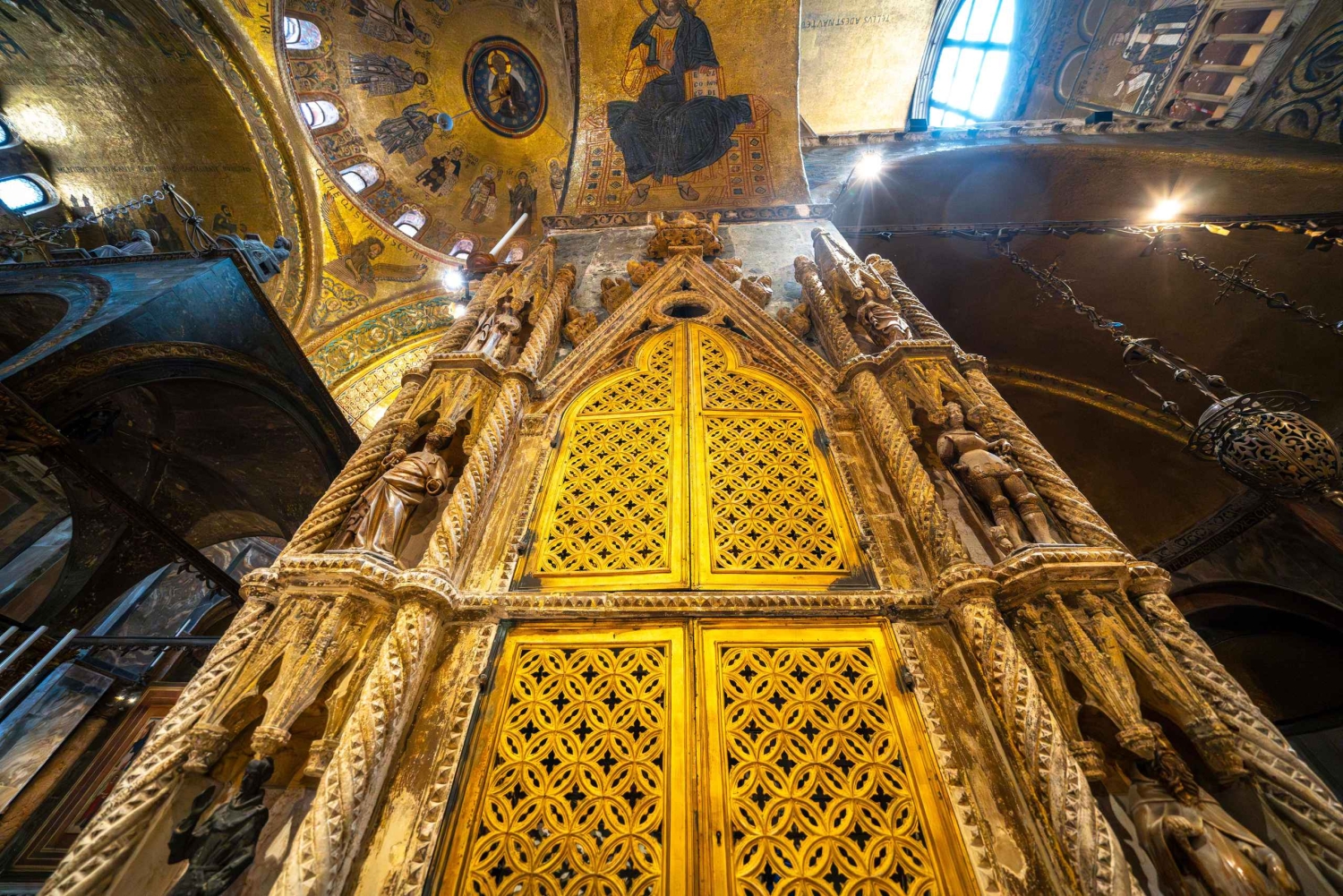Pénétrez dans l'un des plus grands trésors de Venise avec une visite semi-privée unique et personnalisée de 1h30 de la basilique Saint-Marc. basilique Saint-Marc. Avec un maximum de 6 personnes, cette visite immersive garantit confort, profondeur et perspective véritablement locale. Accompagné de guides vénitiens professionnels, explorez les intérieurs époustouflants de la basilique à un rythme détendu, en découvrant des histoires, du symbolisme et des détails cachés que seuls les habitants connaissent. Admirez les mosaïques scintillantes avant de profiter d'un accès exclusif à la Pala d'Oro, le magnifique retable doré qui captive les visiteurs depuis des siècles. Poursuivez votre chemin jusqu'à la terrasse de la basilique, où vous pourrez admirer une vue imprenable sur la place Saint-Marc place Saint-Marc et la lagune offrent des opportunités de photos inoubliables, sans le stress de la foule. Concluez votre expérience dans le plus pur style italien avec un délicieux apéritif, qui vous permettra de vous détendre et de savourer la beauté de la mer vénitienne, tandis que votre guide vous fera part de ses idées et de ses recommandations pour le reste de votre séjour.Includes