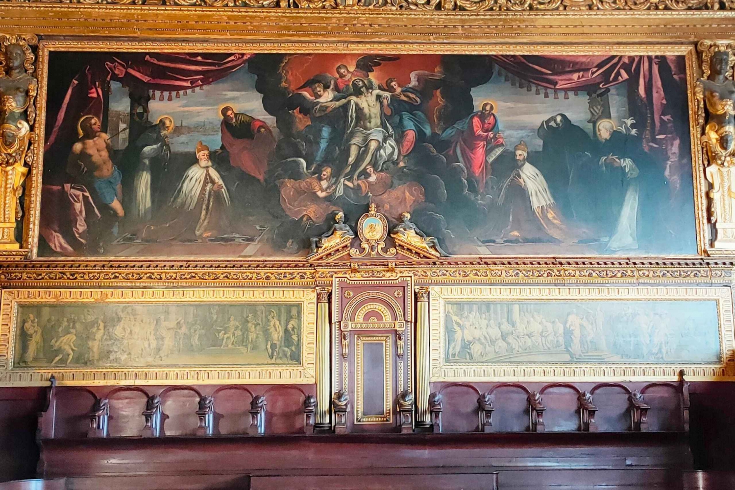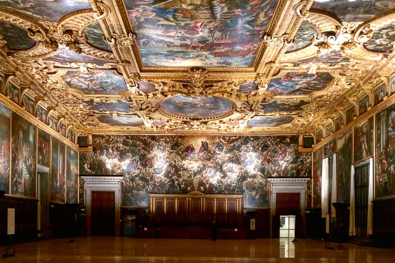 Prima di entrare a Palazzo Ducale scopriremo le prime origini e le leggende legate a questo edificio che ancora oggi affascinano tanti visitatori. Ammireremo i dipinti mozzafiato realizzati da artisti famosi come Tiziano, Tintoretto, Veronese, ... che decorano le sale governative e ascolteremo le affascinanti storie che raccontano. Scopri le misure adottate per garantire un governo longevo e una delle principali minacce che la Repubblica dovette affrontare nel corso della sua lunga storia e che portò alla decapitazione di un Doge. Scopri il temuto Consiglio dei Dieci, che rappresentava un incubo e una minaccia per i civili, prima di recarti nella Sala del Maggior Consiglio e ammirare uno dei più grandi dipinti su tela del mondo. Prima di concludere il nostro tour del Palazzo Ducale, attraverseremo il famoso Ponte dei Sospiri e scenderemo nell'edificio delle prigioni.Includes