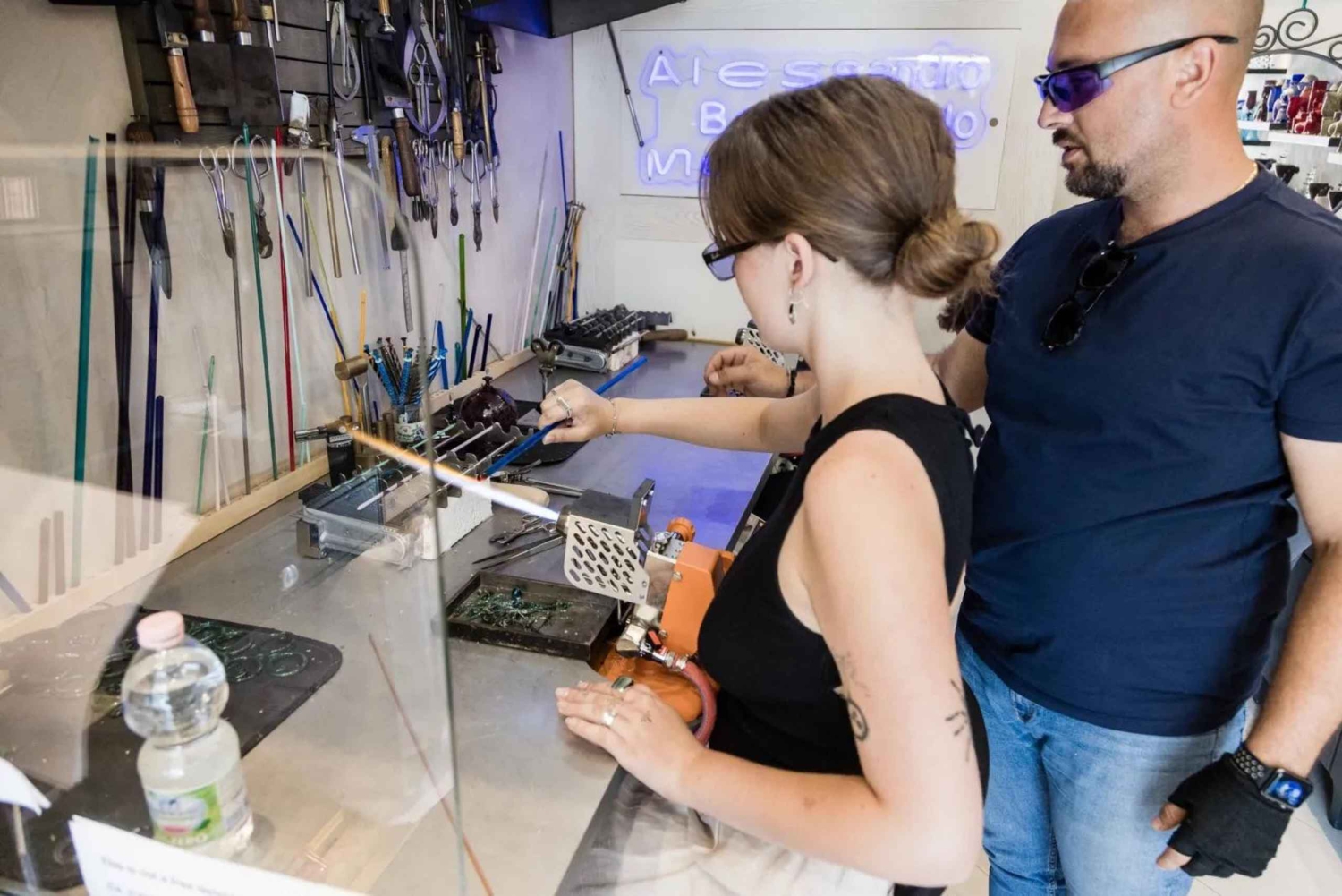 Entra nell'anima viva di Murano e immergiti in un'esperienza unica. Nel nostro atelier, il maestro vetraio Alessandro Boscolo, erede di una tradizione familiare secolare e con oltre 20 anni di esperienza, ti guiderà personalmente attraverso i segreti di questo mestiere millenario. Non ti limiterai a guardare il vetro che si trasforma in forme affascinanti. Tieni in mano il cannello, modella il vetro fuso e dai vita alla tua creazione sotto la guida di un vero maestro muranese. Ogni respiro, ogni movimento ti collega al cuore pulsante di quest'arte antica. Non è una semplice dimostrazione, è un'occasione unica per entrare nella storia di Murano, toccare il suo fuoco e portare a casa il suo spirito. Che tu sia un amante dell'arte, un viaggiatore in cerca di autenticità o qualcuno che sogna di creare qualcosa di eterno, questa esperienza è fatta apposta per te. ✨ Prenota subito il tuo posto e torna a casa con più di un ricordo: porta a casa un pezzo della tradizione di Murano che hai creato tu, un tesoro di vetro, storia e anima.Includes