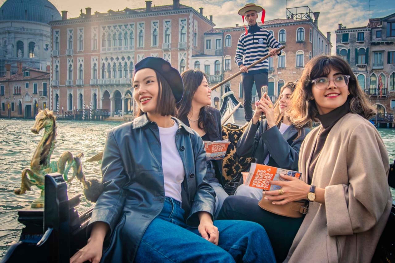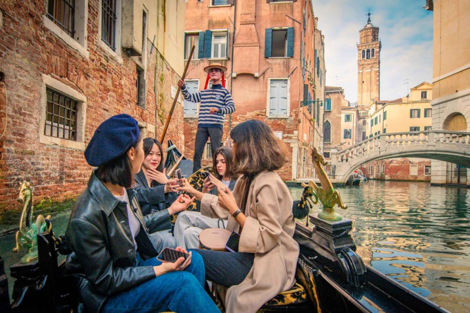 水上からヴェネツィアを探索し、橋と運河の街を堪能しましょう。ベルベットのシートにゆったりと座り、素晴らしいビザンチン様式の建物が通り過ぎるのを眺めましょう。無数の橋の下を滑り、宮殿の崩れかけた壁に打ち寄せる水の柔らかな音を聞きましょう。 有名なカナル・グランデをクルーズし、サンタ・マリア・デッラ・サルーテ教会の周辺を散策しましょう。 17 世紀のこの素晴らしいバロック様式の教会を鑑賞し、曲がりくねった小さな運河を眺めましょう。 ゴンドラでリラックスし、有名なリアルト橋やサン・モイゼ教会などの名所を眺めましょう。 運河をクルーズしながら、フェニーチェ劇場やその他のヴェネツィアの名所を鑑賞しましょう。Includes