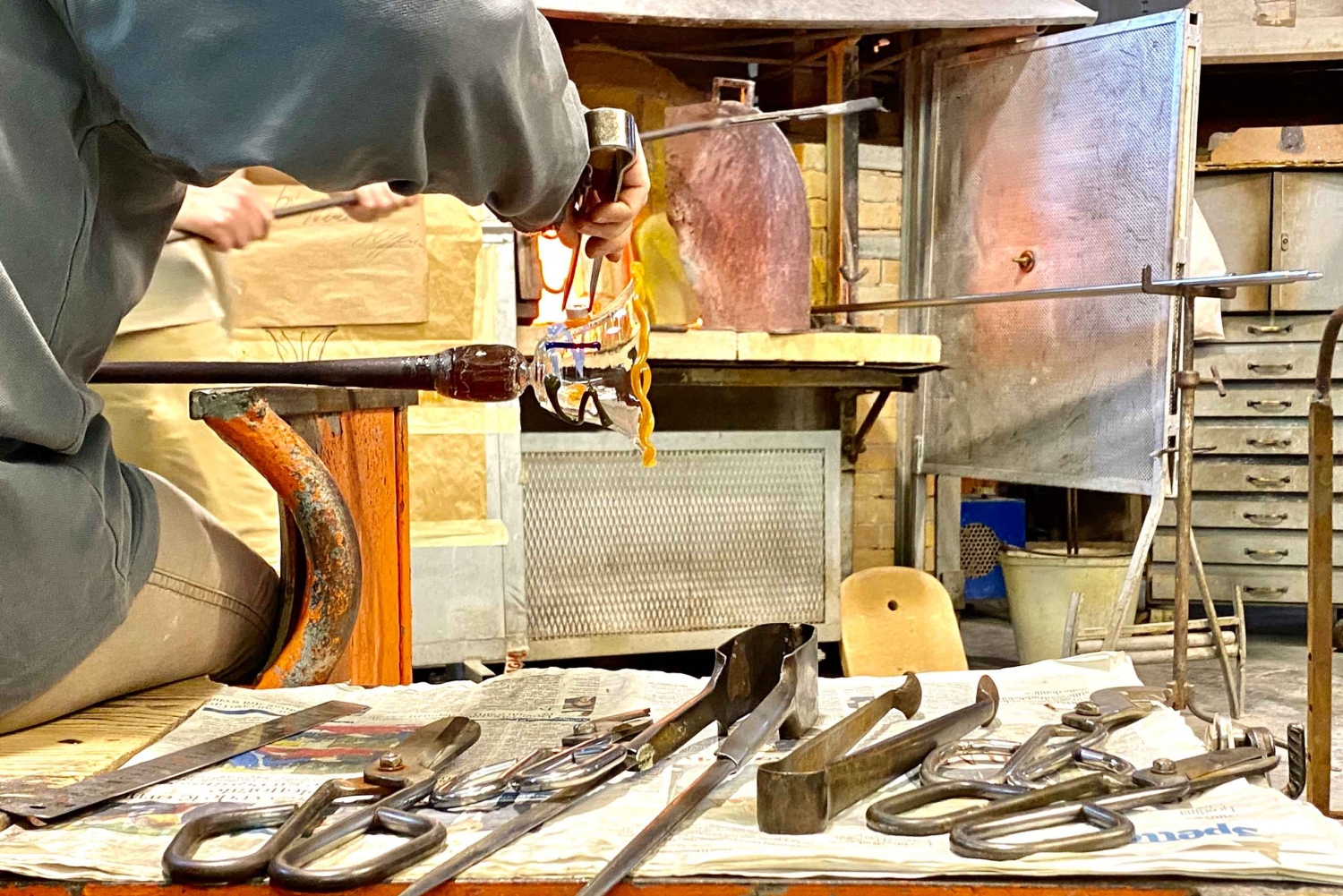 - 帰りはガラス工場が提供する無料のボートで移動します