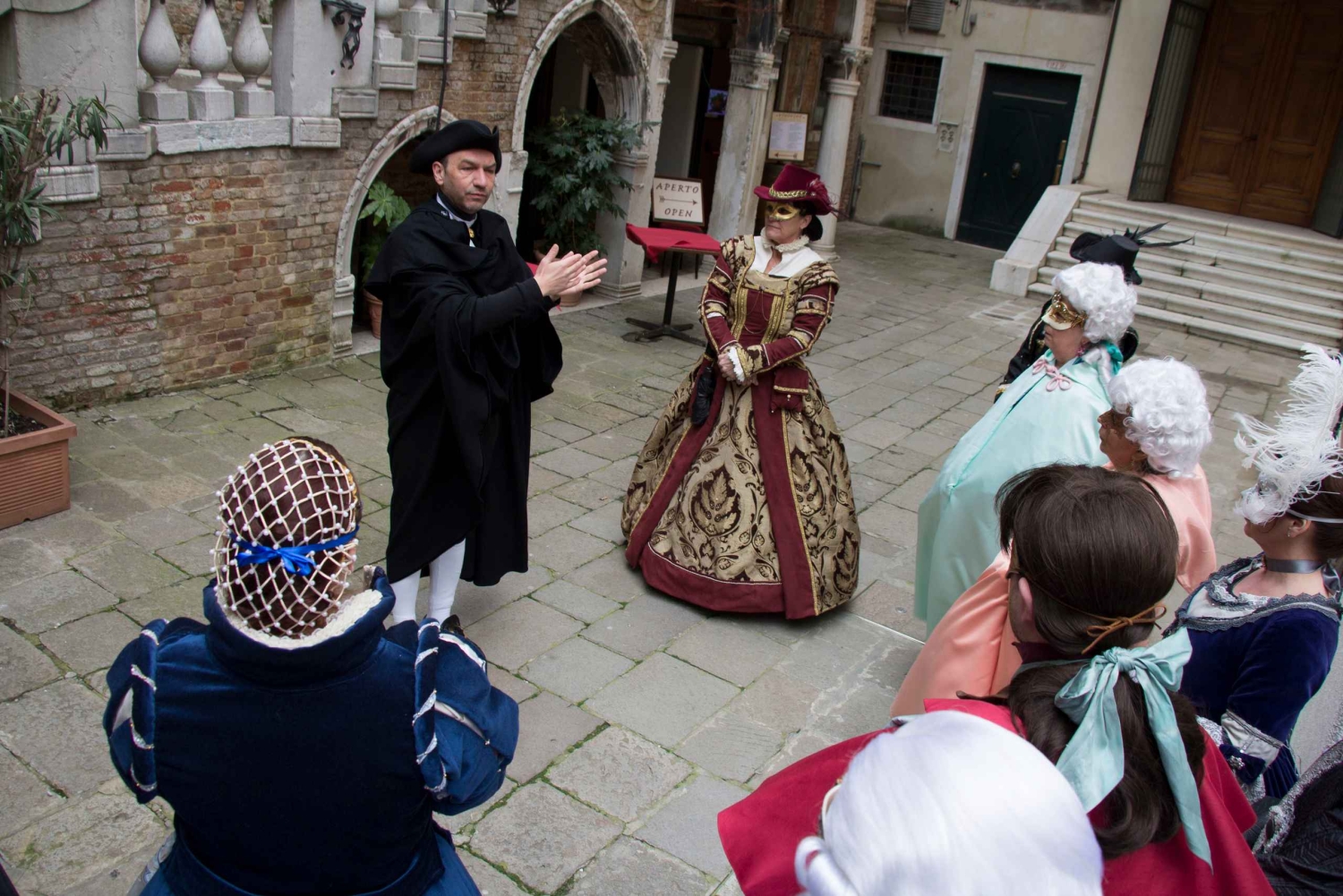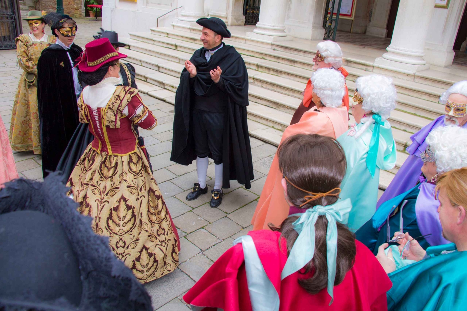 Ontmoet je Engelssprekende gids voor het operagebouw La Fenice voor een wandeltour in de voetsporen van Giacomo Casanova, en reis terug naar het carnaval van Venetië in de 18e eeuw. Je gids is gekleed in traditionele Venetiaanse klederdracht en vertelt je het verhaal van het Venetiaanse carnaval, toen en nu. Leer de geschiedenis van de maskers, die ooit werden gebruikt om de identiteit van de drager te verbergen, en hoor hoe ze worden gemaakt. Bewonder de elegante kostuums uit de 17e eeuw, die nu tijdens carnaval door de straten paraderen. Bekijk de luxueuze kostuums die gedragen worden door mensen die een van de vele Grand Balls in privépaleizen bijwonen. Je gids vertelt over Casanova als grote minnaar, avonturier, extravagant, vrijmetselaar en dienaar van de gevestigde orde. Hij werd geboren in Venetië, groeide op in de wijk San Samuele en je wandelt door de smalle calle (steegjes) die langs zijn huis lopen en het huis van de dichter Giorgio Baffo, die de jonge Casanova liet kennismaken met wereldse genoegens. Leer meer over de Ridotto, het 1e Casino in Venetië, waar Casanova de Venetiaanse aristocratie zou ontmoeten. Hoor fascinerende verhalen over de courtisanes die ook een rol speelden om de stad zo levendig mogelijk te maken. Beleef een alternatieve wandeltour, vol verlangen en passie, plezier en vermaak. Sluit de wandeltour af in een typisch café op ongeveer 10 minuten lopen van het San Marcoplein met een warme cappuccino en een typisch Venetiaans carnavalgebakje genaamd 'frittelle', dat alleen tijdens het carnaval wordt gemaakt.Includes