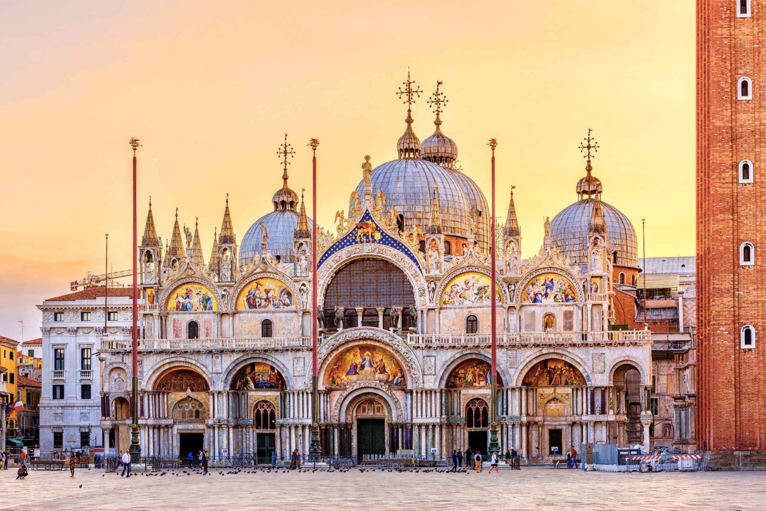 - Het bezoek aan de De San Marcobasiliek duurt ongeveer 15–20 minuten, volgens de lokale regelgeving. Tickets voor de basiliek kosten €12 per persoon. Tickets voor het Dogenpaleis kosten €30 per volwassene. Alle extra kosten zijn administratieve kosten. Deze tour gaat onder alle weersomstandigheden door. Houd er rekening mee dat er tijdens bepaalde periodes van het jaar hoog water kan optreden. In dat geval zijn er verhoogde loopbruggen voor toegang en kun je voor de ingang overschoenen kopen. Zorg dat je op tijd bent, want laatkomers kunnen niet meer mee en krijgen geen geld terug. Om veiligheidsredenen mogen grote tassen en rugzakken niet mee naar binnen. Fotograferen en video-opname zijn niet toegestaan in de basiliek. Kleed je gepast voor een gebedshuis: schouders en knieën moeten bedekt zijn. Geef een geldig e-mailadres en telefoonnummer op, inclusief je landcode, zodat we je bevestigingen en updates kunnen sturen.
