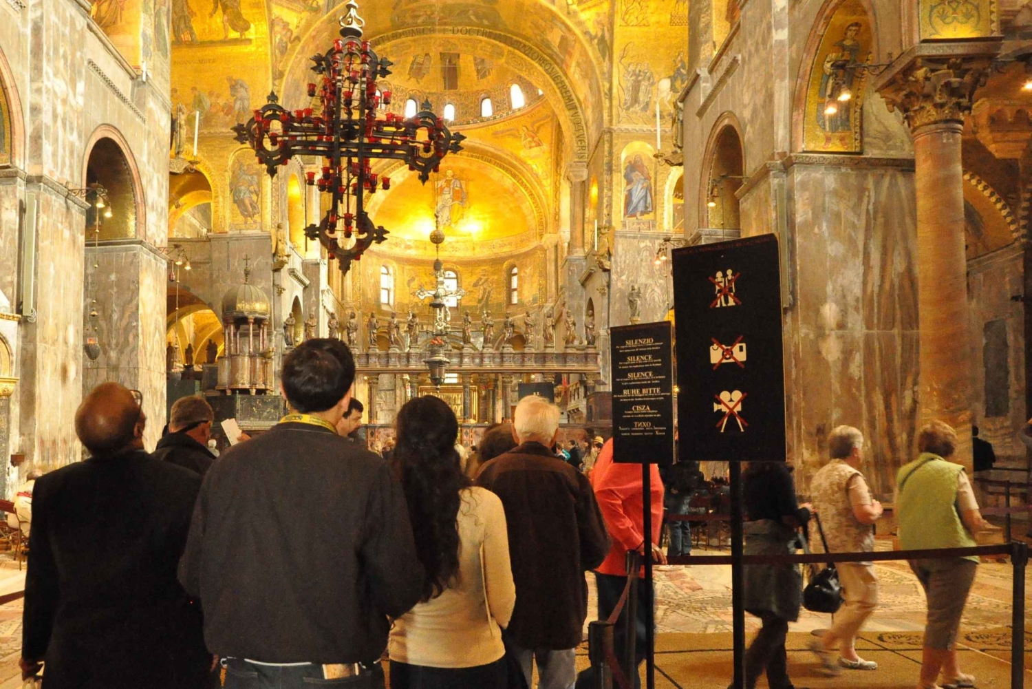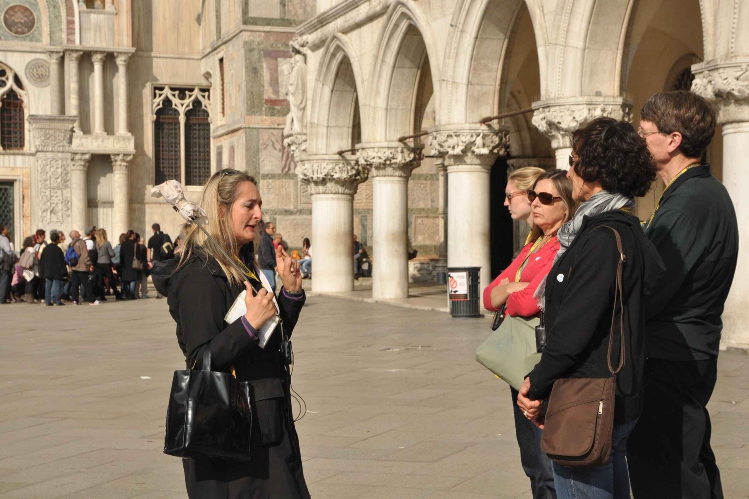 Lokalny przewodnik mówiący po angielsku przez 3,5 godziny Zarezerwowane bilety do Pałacu Dożów Bilety bez kolejki do Bazyliki św. Marka Małe grupy do 20 osób SłuchawkiImportant Information