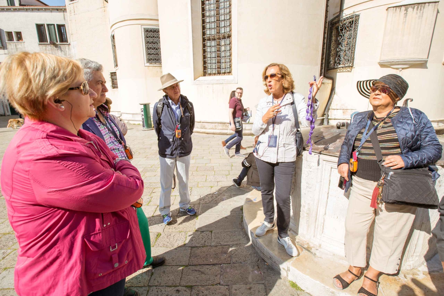 Wybierz się na spacer po Wenecji z doświadczonym przewodnikiem. Podczas tej 3-godzinnej wycieczki zobaczysz z zewnątrz najważniejsze pomniki tego urzekającego miasta. Zwiedzisz też Pałac Dożów, korzystając z wejścia priorytetowego. Twoja trasa zaczyna się na Placu Świętego Marka, gdzie poznasz początki miasta i jego historię. Poznaj najważniejsze zabytki, w tym Bazylikę św. Marka, Pałac Dożów, Dzwonnicę, Wieżę Zegarową i Procuratie. Udaj się na plac Santa Maria Formosa, gdzie przewodnik opowie Ci historie związane z tym charakterystycznym miejscem. Zobacz Campo SS Giovanni e Paolo, Panteon Wenecji, dom Marco Polo i Teatr Malibran. Wróć na plac św. Marka ulicą Mercerie, która łączy Rialto z placem św. Marka i jest główną ulicą handlową w mieście! Omiń kolejkę do Palazzo Ducale (Pałacu Dożów). Przez wieki był to ośrodek władzy politycznej Wenecji. W jego wspaniałych salach znajdują się setki arcydzieł malarstwa. Przewodnik pokaże Ci sale władzy, zabierając Cię w podróż do średniowiecznej Europy. Zachwyć się bogatymi detalami złotych schodów i realizmem scen przedstawionych przez wielu artystów. Przeżyjesz też udrękę więźniów, którzy przed uwięzieniem przechodzili przez słynny Most Westchnień. Twój bilet z priorytetowym wstępem do Pałacu Dożów jest wliczony w cenę wycieczki.Includes