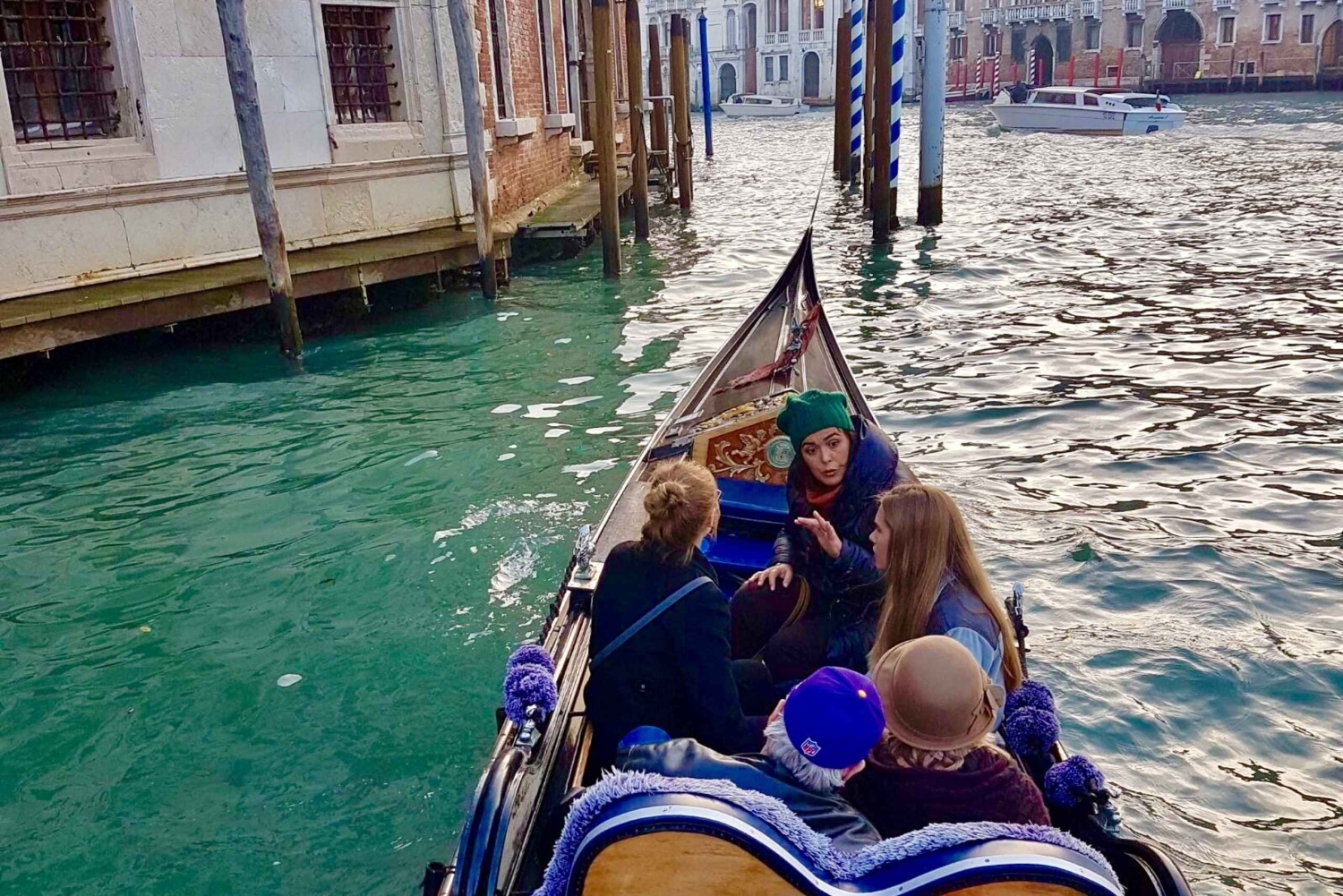 Wybierz się na wycieczkę po Wenecji z jej dróg wodnych, aby podziwiać najlepsze i najbardziej zapierające dech w piersiach widoki na miasto. Ta 30-minutowa wycieczka jest przeznaczona dla grupy maksymalnie 4 osób plus przewodnik. Będziesz stylowo prowadzony przez osobistego gondoliera przez wieki historii, wzdłuż kultowego Wielkiego Kanału, jednej z najbardziej eleganckich głównych ulic na świecie. Miń Ca Dario, dom Casanovy, Palazzo Grassi, Ca Rezzonico, Ca Bembo, Ca Pesaro, most Rialto, Campo Manin i dom Mozarta. Usiądź wygodnie i zrelaksuj się, podziwiając otoczenie, a Twój doświadczony przewodnik zabawi Cię anegdotami o mieście. Poznaj historię La Serenissima, przejdź obok Muzeum Peggy Guggenheim i przejdź pod mostem Accademia. Posłuchaj opowieści o samej gondoli, gdy będziesz w pobliżu majestatycznego mostu Rialto. Skręcając w jeden z malowniczych bocznych kanałów Wenecji, będziesz mógł podziwiać splendor Canal Grande, a także cieszyć się osobliwym urokiem mniejszych, bardziej mieszkalnych obszarów. Twój przewodnik opowie Ci wszystko o gondoli i jej unikalnej strukturze oraz tradycjach weneckich gondolierów. Jest to doskonały sposób na połączenie pouczającej i stymulującej wycieczki z przewodnikiem z romantyczną przejażdżką gondolą.Includes