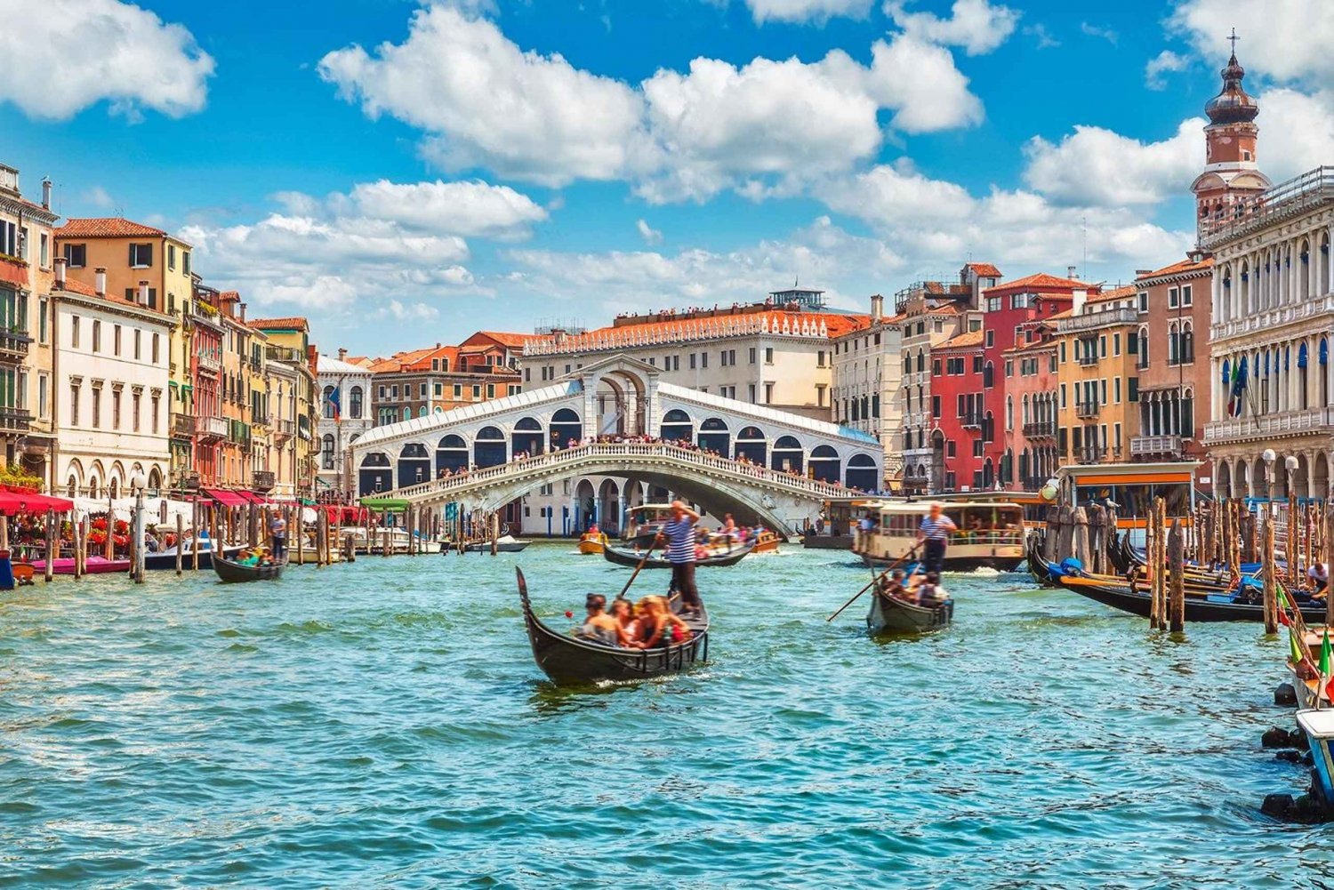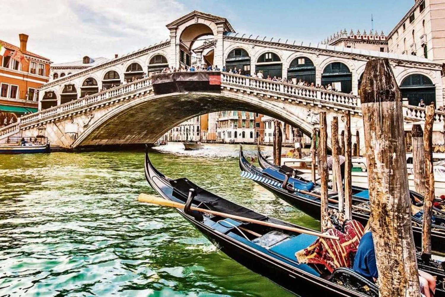 **Wenecja odsłonięta: Wycieczka piesza i gondolą** Wyrusz w podróż po Wenecji, która odkryje przed Tobą ukryte skarby tego miasta, łącząc urzekającą wycieczkę pieszą ze spokojną przejażdżką gondolą. Ta wyjątkowa przygoda jest przeznaczona dla tych, którzy chcą odkryć mniej znane cuda Wenecji, obiecując niezapomnianą eksplorację jej bogatego dziedzictwa, oszałamiającej architektury i tętniącej życiem kultury. Twoja przygoda rozpoczyna się na kultowym moście Rialto, ponadczasowym symbolu Wenecji, który elegancko przecina Wielki Kanał. Stojąc na tym historycznym moście, poczujesz tętniącą życiem energię miasta, obserwując tętniącą życiem aktywność na Grand Canal, gdzie gondole i vaporettos suną bez wysiłku po wodzie. Nasz doświadczony przewodnik podzieli się z Tobą fascynującymi historiami i spostrzeżeniami historycznymi, przygotowując grunt pod ukryte cuda, które czekają na Ciebie. Pozostawiając za sobą most Rialto, zapuszczamy się w wąskie, kręte uliczki, które tworzą serce Wenecji. Nasz pierwszy ukryty klejnot znajduje się na małym, zacisznym dziedzińcu, dostępnym tylko przez wąską alejkę. Tutaj odkryjesz Scala del Bovolo, architektoniczne arcydzieło, które pięknie reprezentuje przejście między stylem gotyckim i renesansowym. Ta spiralna klatka schodowa o skomplikowanej konstrukcji i panoramicznych widokach jest świadectwem kreatywności i artystycznej sprawności weneckich architektów. Podziwiając ich piękno, nasz przewodnik wzbogaci Twoje doświadczenie o kontekst historyczny, pogłębiając Twoje zrozumienie architektonicznej podróży Wenecji. Nasza eksploracja będzie kontynuowana, gdy będziemy poruszać się po uroczych uliczkach i kanałach prowadzących do obszaru między Campo Sant'Angelo a słynnym Teatro La Fenice. Ta część Wenecji jest przesiąknięta historią i kulturą, a każdy zakręt ujawnia nową narrację. Campo Sant'Angelo, ze swoją osobliwą i malowniczą atmosferą, oferuje wgląd w codzienne życie Wenecjan, podczas gdy Teatro La Fenice, jeden z najbardziej znanych teatrów operowych na świecie, jest latarnią morska artystycznego dziedzictwa Wenecji. Nasz przewodnik rozjaśni znaczenie tych zabytków, snując opowieści o intrygach, romansach i artyzmie, które ożywiają przeszłość miasta. Gdy nasza wycieczka piesza dobiegnie końca, przygoda jest daleka od zakończenia. Czeka na Ciebie tradycyjna przejażdżka gondolą, zapewniająca kwintesencję weneckiego doświadczenia. Wsiądziesz do pięknie wykonanej gondoli i będziesz delikatnie wiosłować przez labirynt weneckich kanałów. Ta spokojna podróż zabierze Cię przez wąskie, klimatyczne drogi wodne, zapewniając wyjątkową perspektywę z dala od zwykłych ścieżek turystycznych. Podczas rejsu przed Twoimi oczami otworzą się ukryte zakątki i spokojny urok Wenecji. Przejażdżka gondolą kończy się na Wielkim Kanale, głównej arterii Wenecji, skąd roztaczają się niezrównane widoki na wspaniałe pałace i zabytkowe budynki miasta. Kontrast między wąskimi kanałami i szeroką przestrzenią Wielkiego Kanału podkreśla różnorodne piękno Wenecji.Includes