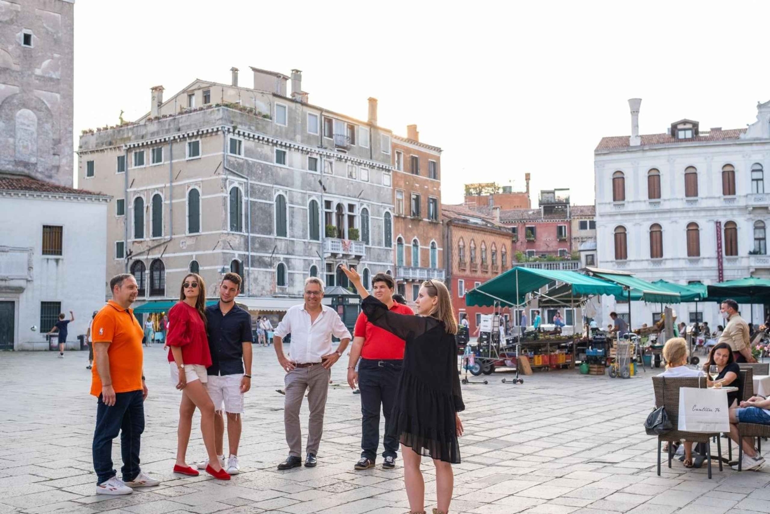 Wkrocz do serca Wenecji dzięki wycieczce pieszej z przewodnikiem, która odkrywa najbardziej charakterystyczne zabytki miasta oraz nieoczekiwane skarby. Rozpoczynając od historycznego centrum, przewodnik poprowadzi cię przez urocze uliczki i tętniące życiem place, omijając najbardziej zatłoczone trasy, ale jednocześnie pozwalając ci poznać prawdziwą istotę Wenecji. Spacerując wąskimi uliczkami i wzdłuż cichych kanałów, miasto powoli odkrywa przed tobą swoją mieszankę historii, legend i codziennego życia. Wycieczka zaprowadzi cię do mostu Rialto, jednego z najważniejszych zabytków Wenecji i bijącego serca życia handlowego od wieków. Z jego łuku można podziwiać Canal Grande, niegdyś zatłoczony kupcami, a obecnie tętniący życiem dzięki gondolom i vaporetti. Ta przerwa to coś więcej niż tylko drink, to okazja, aby rozkoszować się lokalną atmosferą, spotkać się z Wenecjanami i poczuć rytm codziennego życia w lagunie. Żadne doświadczenie Wenecji nie byłoby kompletne bez przejażdżki gondolą. Wsiądź na pokład i płynąć łagodnie kanałami, otoczonymi eleganckimi pałacami, wdzięcznymi mostami i ukrytymi zakątkami widocznymi tylko z wody. Ta ponadczasowa perspektywa zmienia miasto w żywą pocztówkę i pozostawia niezapomniane wspomnienia. Podróż kończy się wciągającym doświadczeniem wirtualnej rzeczywistości, w którym technologia ożywia historię Wenecji. Załóż zestaw słuchawkowy i obserwuj, jak Piazza San Marco ewoluowało na przestrzeni wieków, i dryfuj wirtualnie wzdłuż Canal Grande. To innowacyjny i emocjonujący finał, który łączy przeszłość, teraźniejszość i wyobraźnię.Includes