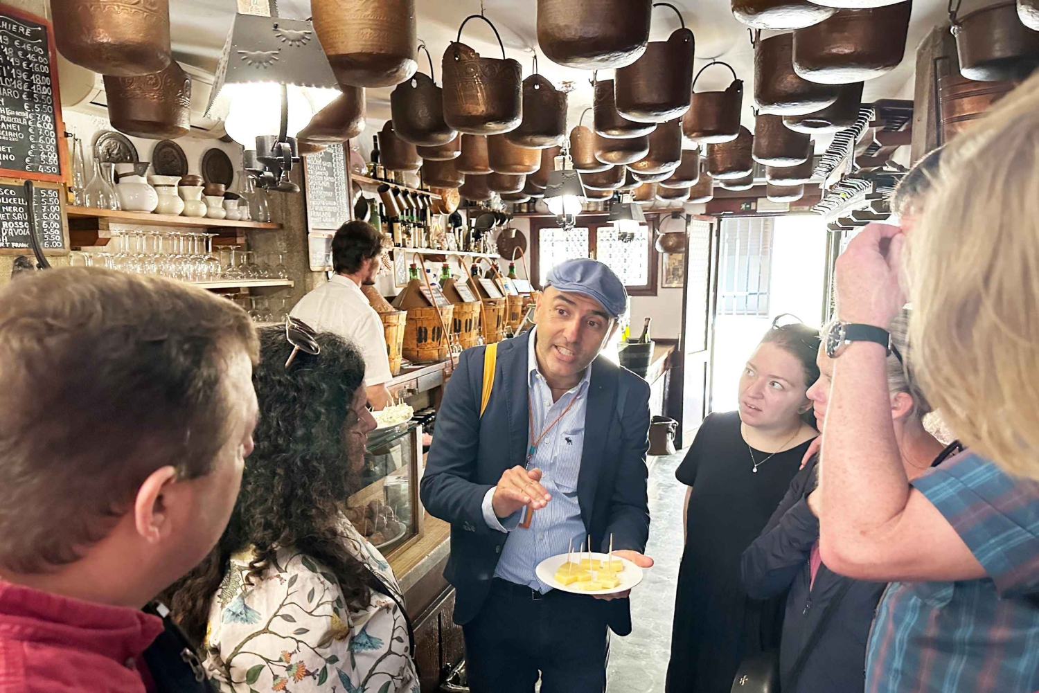 Dołącz do tej Venice Street Food Tour, aby poznać kulinarne specjały i tradycje miasta. Podczas tego doświadczenia odkryjesz przepisy kuchni północnych Włoch i skosztujesz lokalnych potraw ulicznych, w tym autentycznych „cicchetti”, typowych małych przekąsek z różnymi składnikami, „weneckich tapas”, pysznych serów i deserów. Twój przewodnik oprowadzi Cię po centrum miasta, pokazując jedne z najbardziej fascynujących zabytków, w tym Canal Grande, Campo Santa Margherita i San Paolo, i zatrzymując się w zabytkowych restauracjach. Posłuchaj ciekawych opowieści i komentarzy na temat kultury miasta i jego wieloletniego dziedzictwa gastronomicznego, odkrywając Rialto Market, autentyczny lokalny targ z licznymi stoiskami i pysznymi świeżymi produktami. Przygotuj się na niesamowite jedzenie oraz ciekawą sztukę i kulturę.Includes