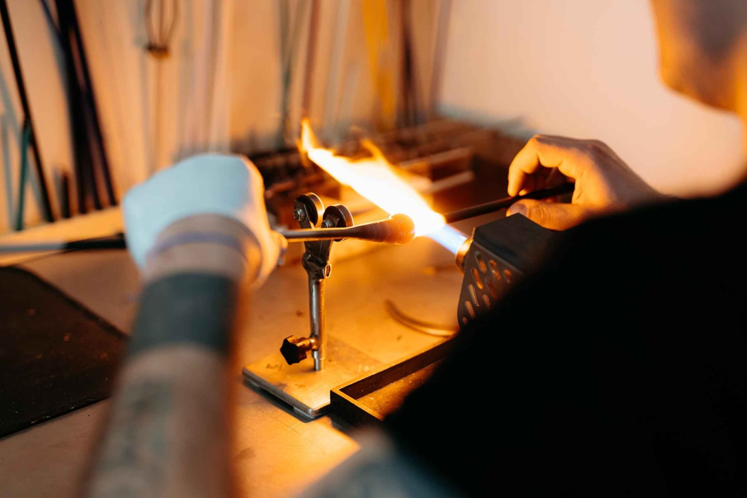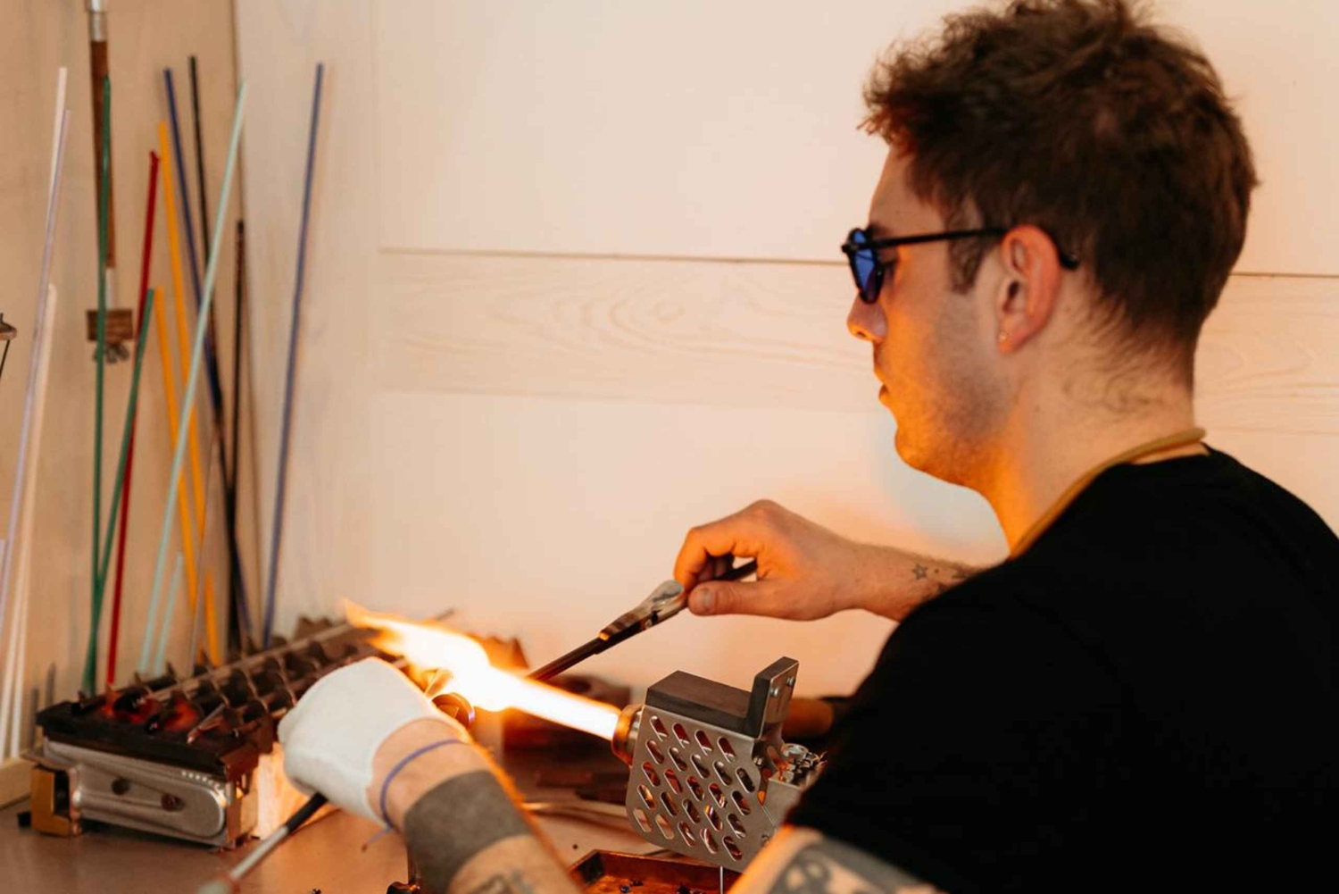 Погрузитесь в живую душу Мурано и получите уникальные впечатления. В нашем ателье мастер-стеклодув Алессандро Босколо, наследник многовековой семейной традиции с более чем 20-летним опытом, лично познакомит вас с секретами этого тысячелетнего ремесла. Вы не просто будете наблюдать, как стекло превращается в ослепительные формы. Вы будете держать трубку, формировать расплавленное стекло и воплощать в жизнь свое собственное творение под руководством истинного мастера Мурано. Каждый вдох, каждое движение соединяет вас с пульсом этого древнего искусства. Это не просто демонстрация — это редкая возможность стать частью истории Мурано, прикоснуться к его огню и увезти его дух домой. Если вы ценитель искусства, путешественник в поисках аутентичности или мечтаете создать что-то вечное, это впечатление создано именно для вас. ✨ Забронируйте место сейчас и увезите домой не только воспоминания, но и часть традиции Мурано, которую вы создали сами — сокровище из стекла, истории и души.Includes