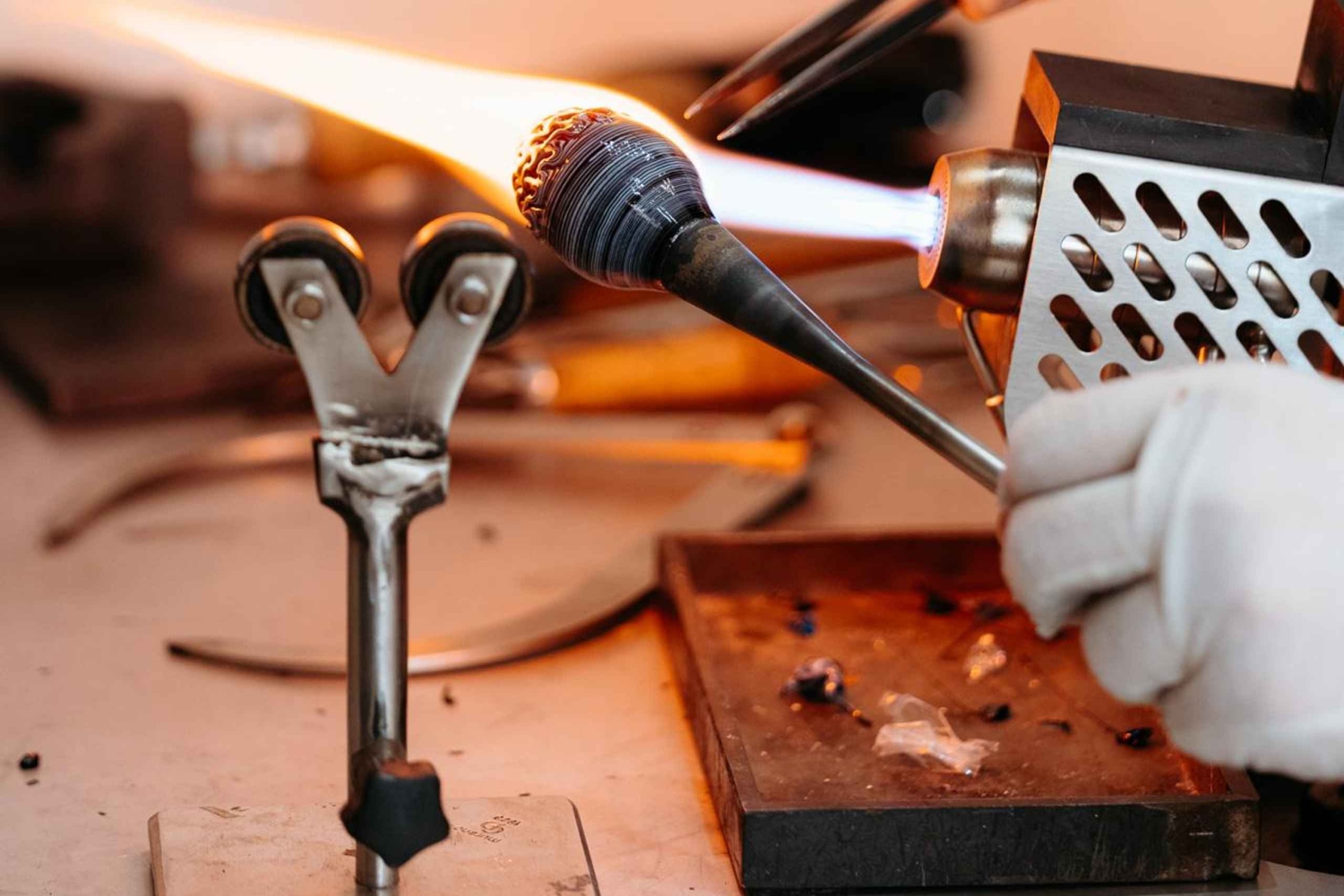 Присоединяйтесь к мастеру стеклодувного искусства Алессандро Босколо в его ателье и познакомьтесь с искусством выдувания стекла из первых рук. Не просто наблюдайте, а станьте творцом: дуйте, формируйте и преобразуйте расплавленное стекло.
