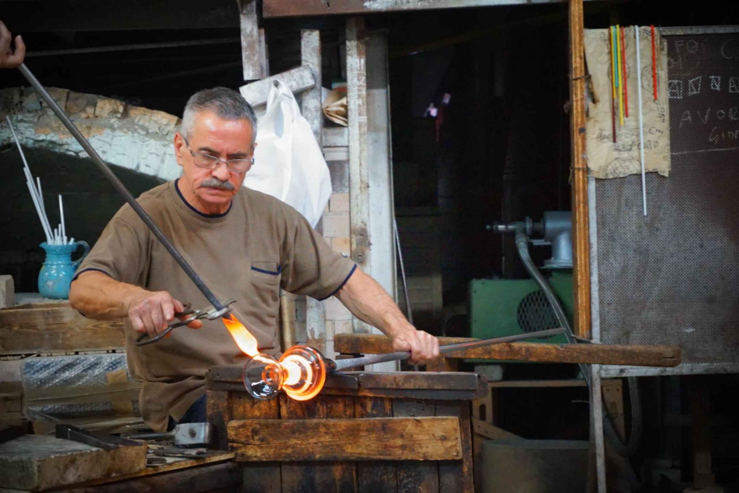 - Посмотрите, как работает мастер-стеклодув в мастерской на Мурано