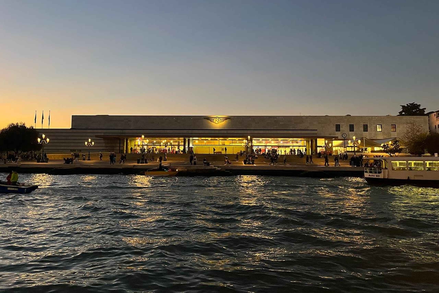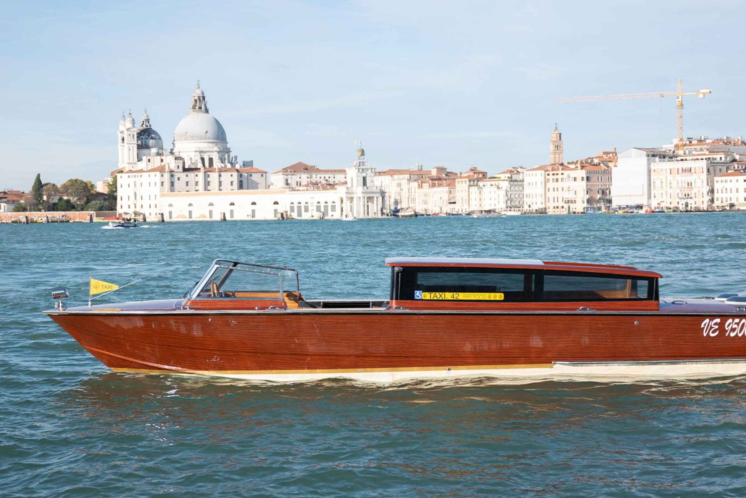 Med vår privata vattentaxitjänst får du en bekväm och elegant transfer från Santa Lucia i Venedig. Föraren väntar på dig på båten vid utgången från Santa Lucia-stationen på höger sida, vid taxidockan bredvid fackdockan 'FERROVIA D'. Resan till destinationen tar 20 minuter, under vilka du kan njuta av det förtrollande Venedig. Om ditt hotell eller din destination är bekvämt beläget kommer du att anlända direkt till din destination. I annat fall kommer du att släppas av vid närmaste punkt.Includes